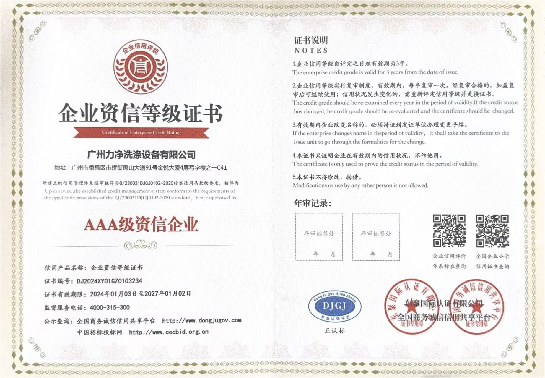 • AAA企業(yè)信用等級證書