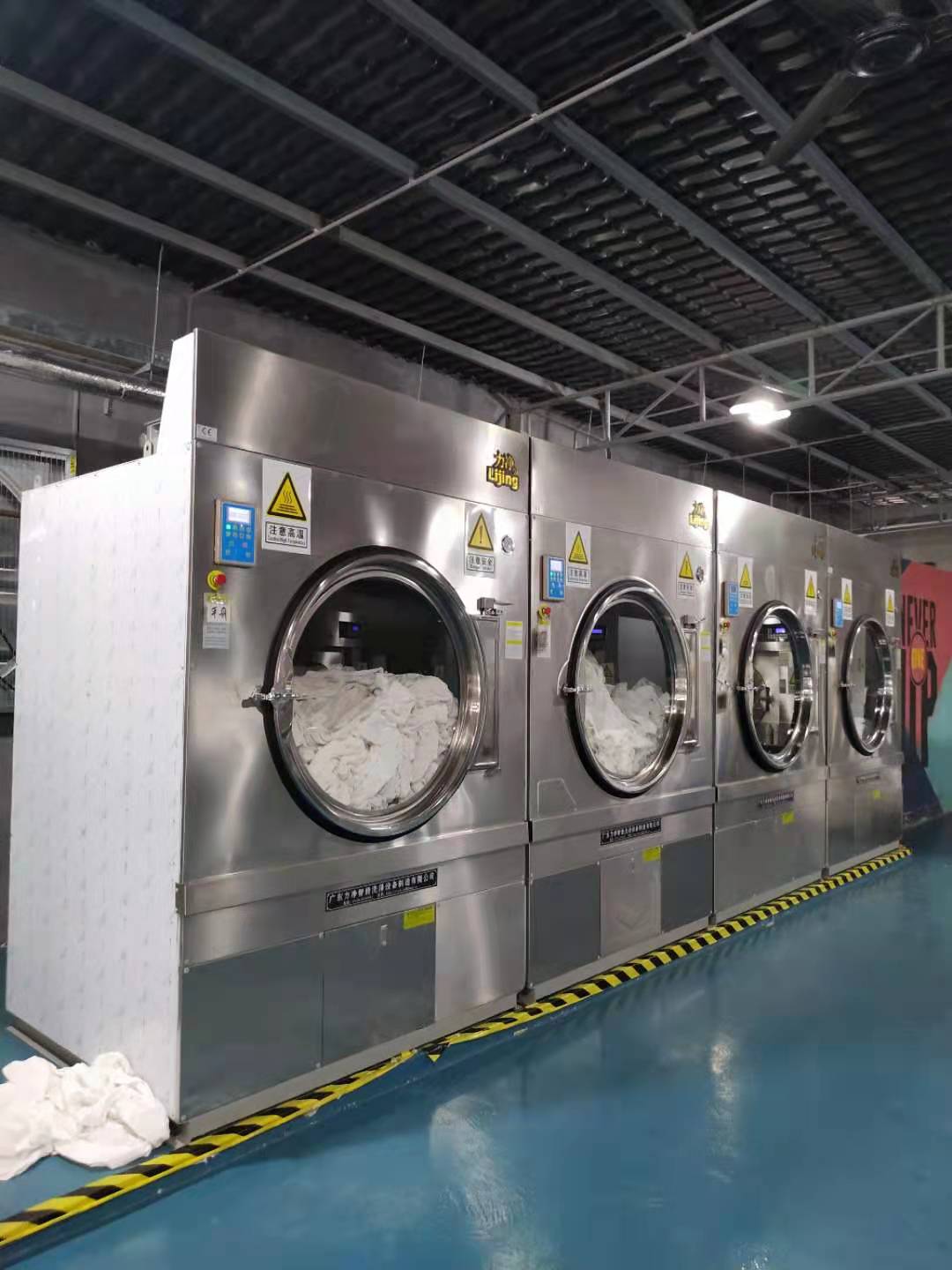 一、全自動工業(yè)洗衣機(jī)和全自動工業(yè)烘干機(jī)。這兩種機(jī)型是目前工廠工作服洗衣房最常見的設(shè)備組合。省時省力,快捷方便,特別適用于洗滌量大的批量洗滌廠。